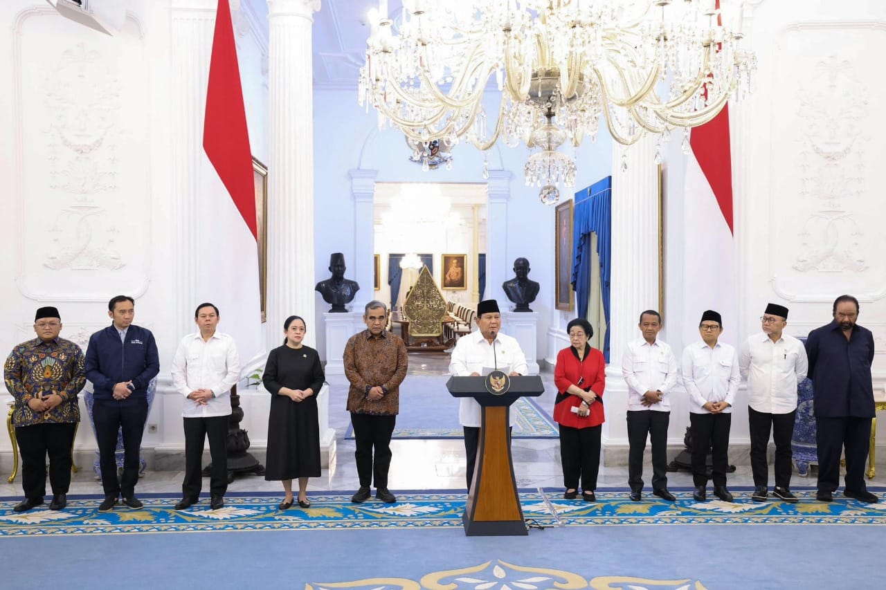 Pertemuan di Istana ini dihadiri Ketua MPR Ahmad Muzani, Ketua DPR Puan Maharani, Ketua DPD Sultan B Najamudin, serta para ketua umum partai politik, di antaranya Megawati Soekarnoputri (PDI-P), Bahlil Lahadalia (Golkar), Muhaimin Iskandar (PKB), Surya Paloh (NasDem), Zulkifli Hasan (PAN), Edhie Baskoro Yudhoyono (Demokrat), dan Sekjen PKS Muhammad Kholid.(Msk)