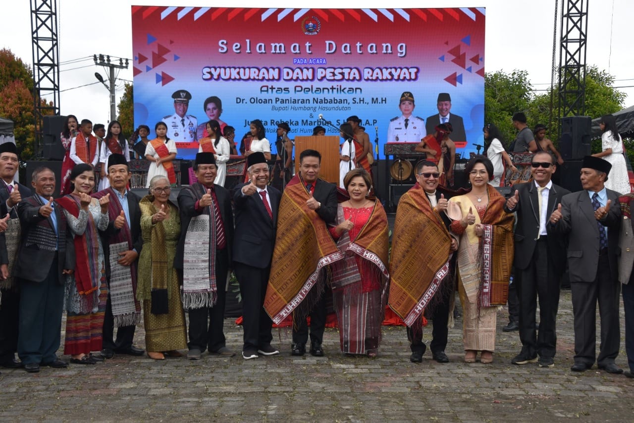 DOLOKSANGGUL EditorPublik.com – Acara syukuran dan pesta rakyat menyambut pelantikan Bupati Humbang Hasundutan, Dr. Oloan Paniaran Nababan, SH, MH, dan Wakil Bupati Junita Rebeka Marbun, SH, MAP, berlangsung meriah di Doloksanggul, Humbang Hasundutan,Sabtu (22/3/2025).